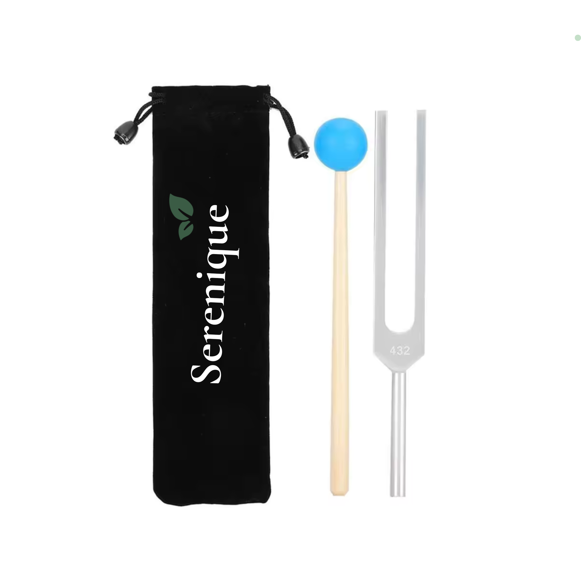 Lightly strike the tuning fork, then place the vibrating stem on your chosen spot. Experience the deep waves that ease discomfort and bring relaxation.